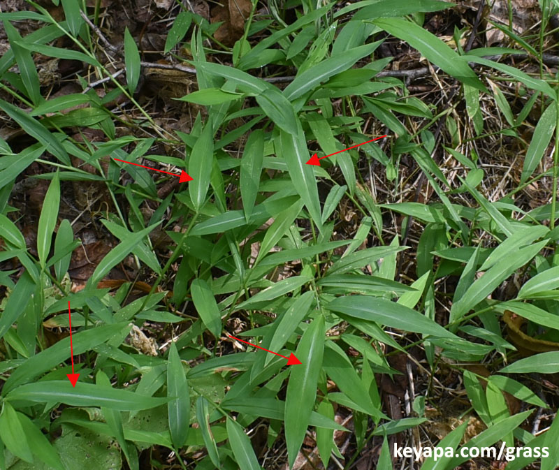 (1) Stiltgrass is a relatively low growing grass, and the arrangement and shape pf the leaves makes it look like a herbaceous bamboo.