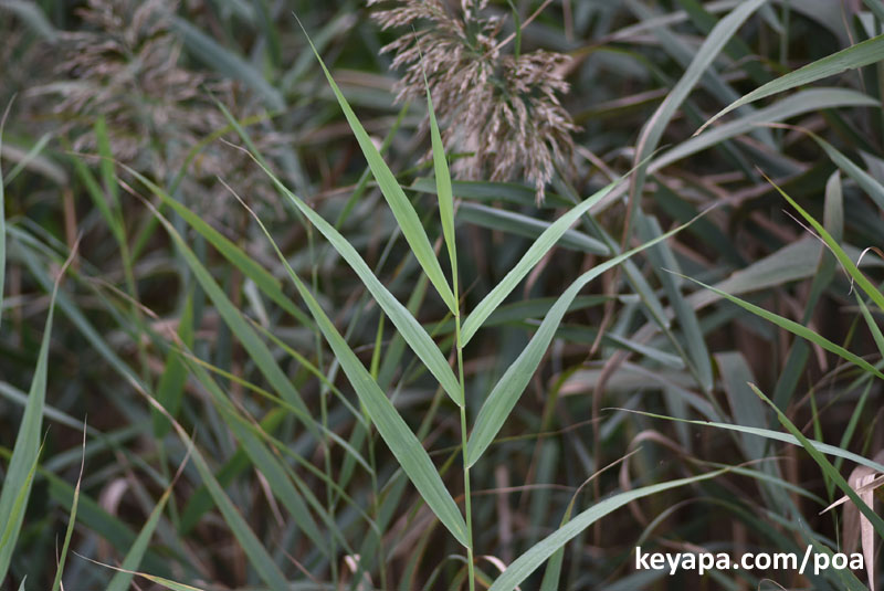 (5) The leaf sheaths of the invasive form even in the lower parts of the culm tend to clasp the stem tightly.