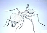 Ben Harris created this wonderfully inventive leafcutter drawing, which shows the leafcutters as spiritual ants in a World filled with warring ant cultures and fearsome predatory spiders and praying mantis. |
