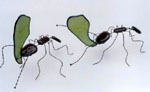 | This 15 cm long leafcutter ant model is the creation of Hilary Talbot, a freelance puppet maker and web site illustrator who is based in Canberra, Australia. She began making puppets and theatre props in 1995 with Company Skylark, and since then has been involved in a variety of productions and builds. You can visit her website, SpiritsDancing.com, for more information. | |