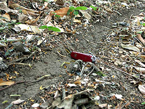 I pushed my pocket knife into the trail.