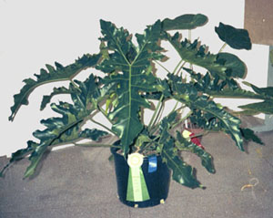 According to LariAnn, she got a hybrid that she called Philodendon x willoum when she crossed the species P. stenolobum and P. bipinnatifidum in the late 1970s and early 1980s. This handsome hybrid won the Best in Show at the IAS Show and Sale at the time, and is still growing and blooming to this day.