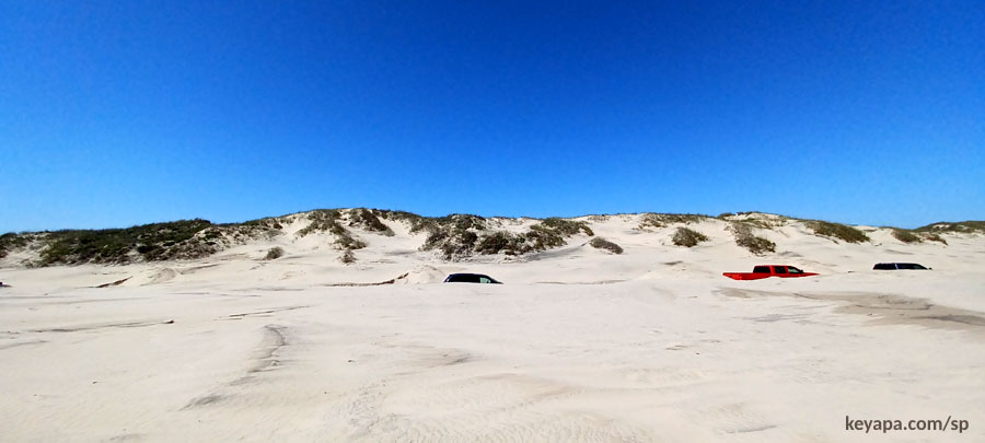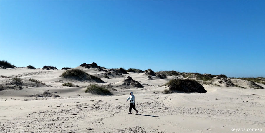 However, if you keep going north by foot (it is possible to drive past the end of State Park Road 100 in a 4WD vehicle, but only along the beach itself), you’ll soon encounter sand dunes that are almost otherworldly in their unusual forms and shapes.