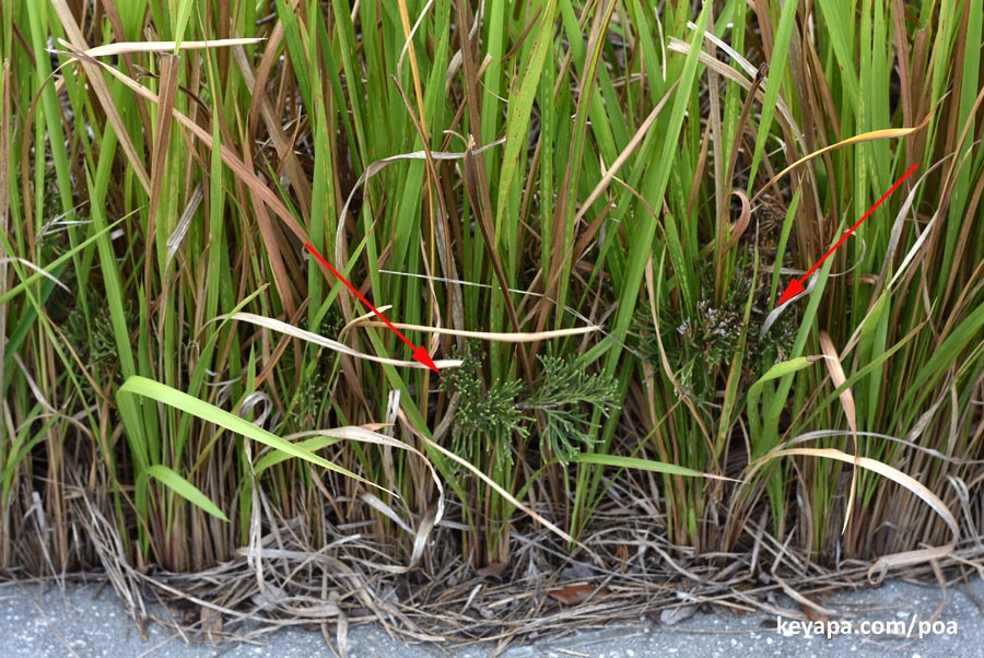(1) Unlike many grasses, which have well developed stem systems above ground, in cogon grass the leaf blades seem to come out directly from the ground.